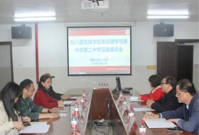 3月21日下午,市教育局督导室唐春平主任及第八届市属学校责任督学韦健、韦庆伟一行五人,在我校明德楼第五会议室举行了第八届市属学校责任督学与柳州二中见面座谈会。我校覃卫东校长、覃桂宁书记、分管学校视导工作的柳州二中党委委员石欣、视导室负责人及成员参与了见面会。