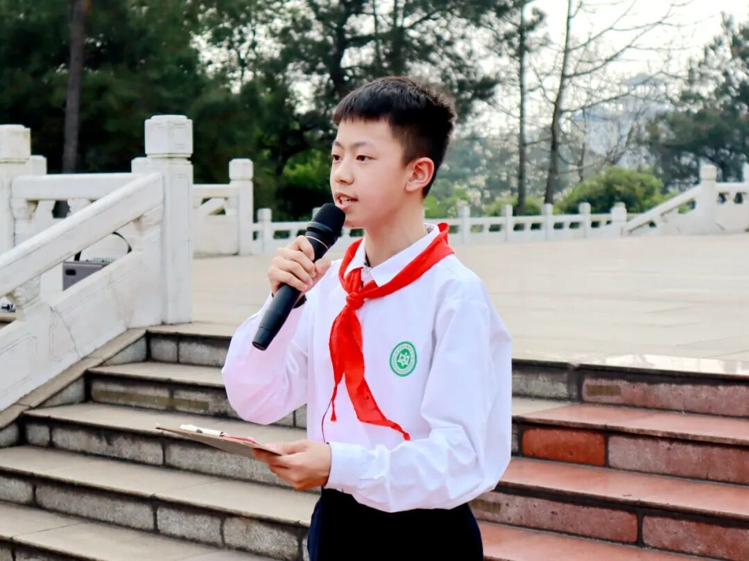 来自2307中队的陆淼峰同学作为少先队员代表,他用坚定的信念告诉我们,少先队员们一定会以先烈为榜样,努力学习,积极进取,为实现中华民族伟大复兴的中国梦贡献自己的力量。