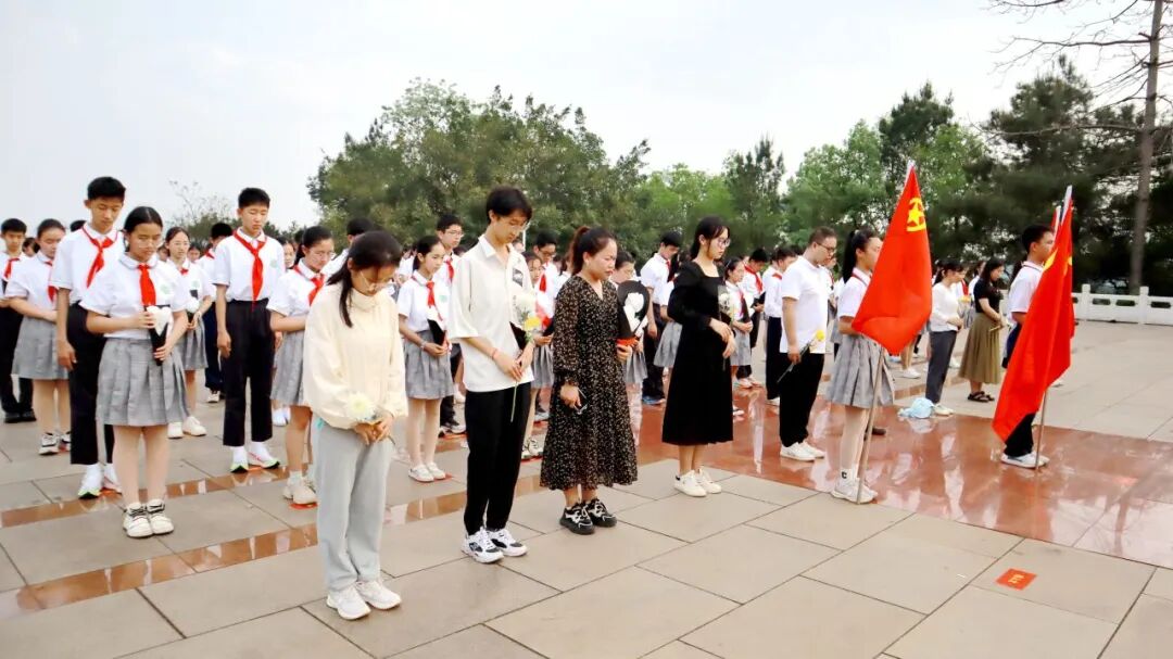誓言有声,青山为证;英雄千古,浩气长存。在高大的革命先烈纪念碑前,党员教师代表和少先队员、团员代表向革命烈士敬献鲜花,缅怀先烈,追思历史。