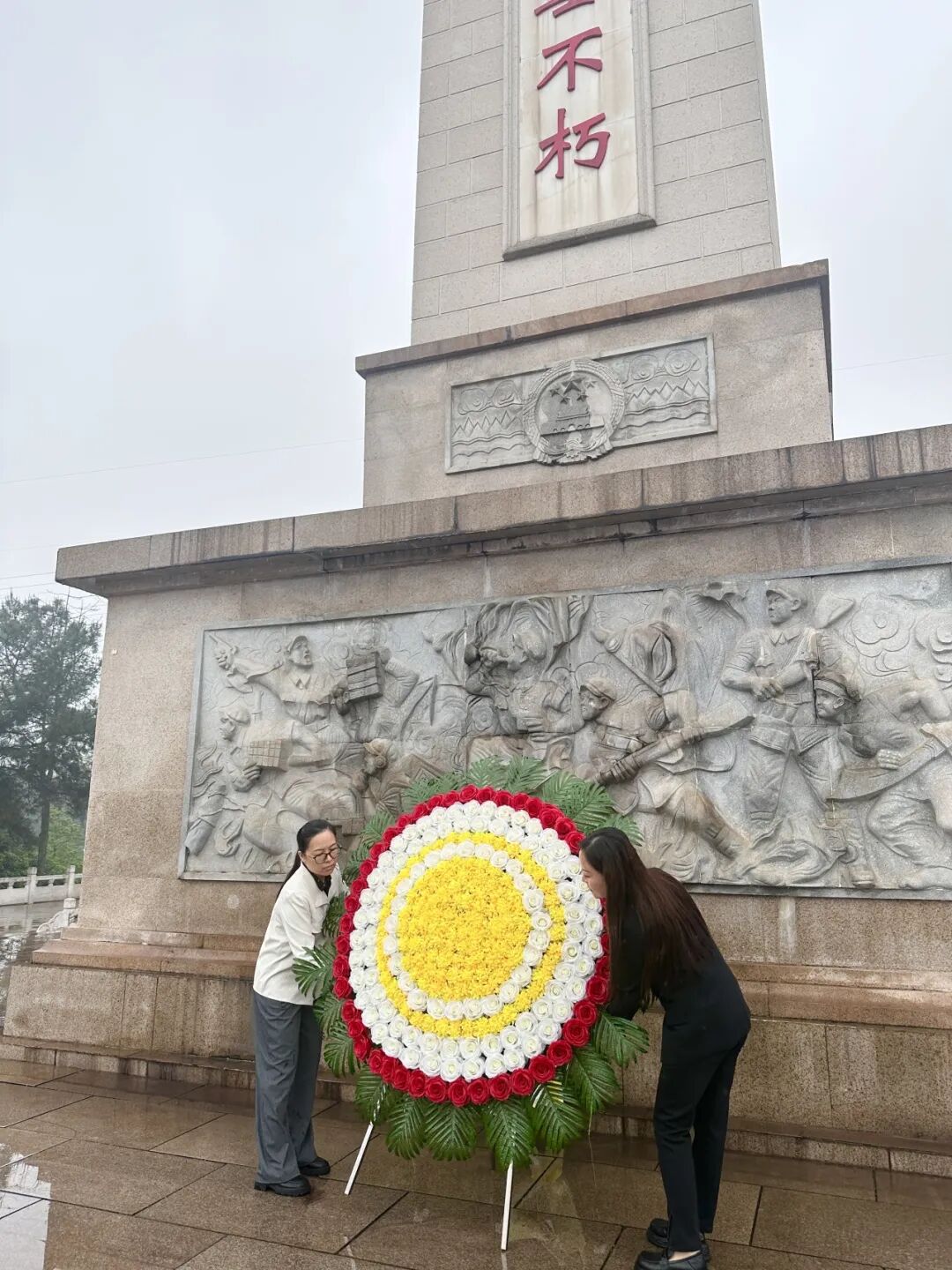 接着,赵丽娜副校长和廖玉菲主任向烈士敬献花圈,表达对革命烈士的哀思与崇敬,在庄严肃穆的气氛中,全体师生向革命烈士默哀致敬,表达对革命先烈的深切怀念和崇高敬意。