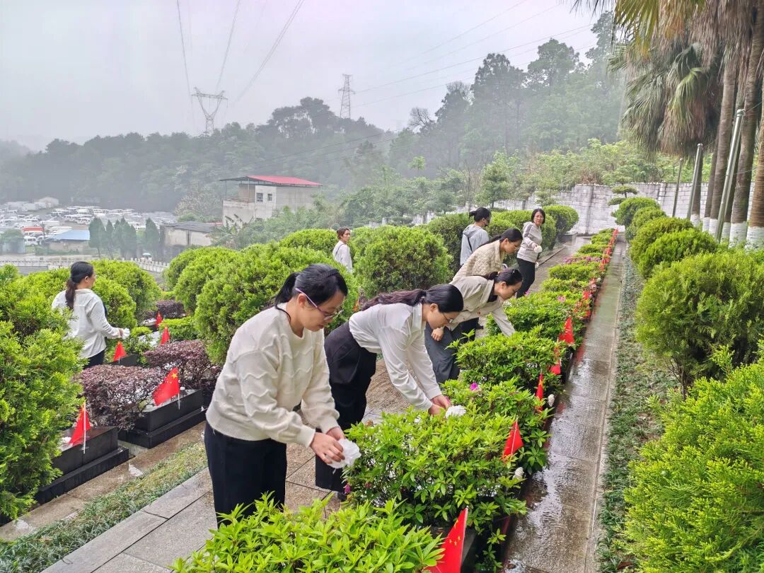 青松翠柏守英烈,春风雨露寄哀思。为缅怀革命先烈,弘扬爱国主义精神,4月10日上午,在集团校党委的组织下,我校党员、团员代表教师和少先队员代表前往柳州市烈士陵园,开展主题为“清明祭英烈,共铸中华魂”清明祭扫烈士墓活动。