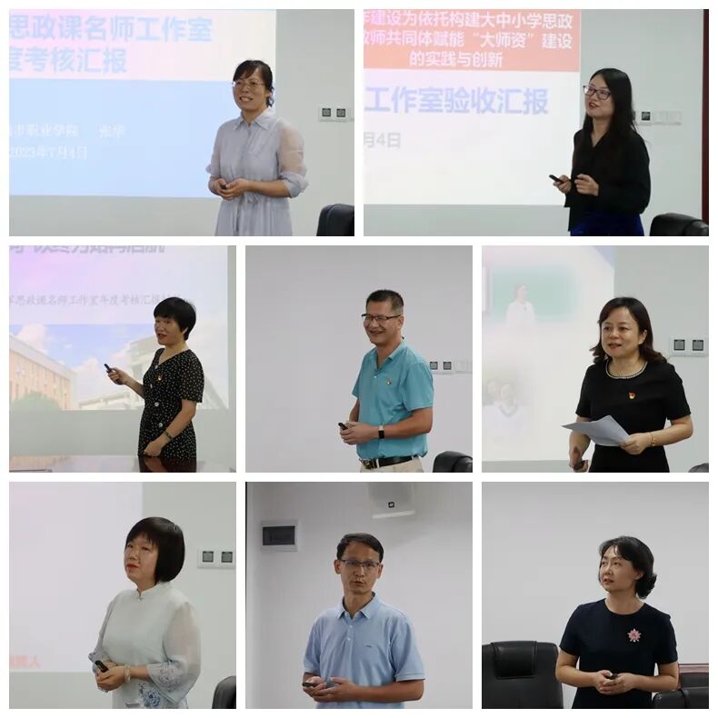 考核现场,各名师工作室主持人依次上台,从工作室自身建设发展情况、教科研交流、思政课精品展示、手拉手帮扶、网络平台建设等方面汇报本工作室2022年的相关工作,并接受专家评审的提问。