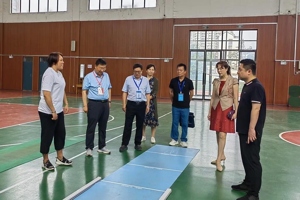 国家及自治区视导组在柳工中学及附小检查体育测试场所相关设施